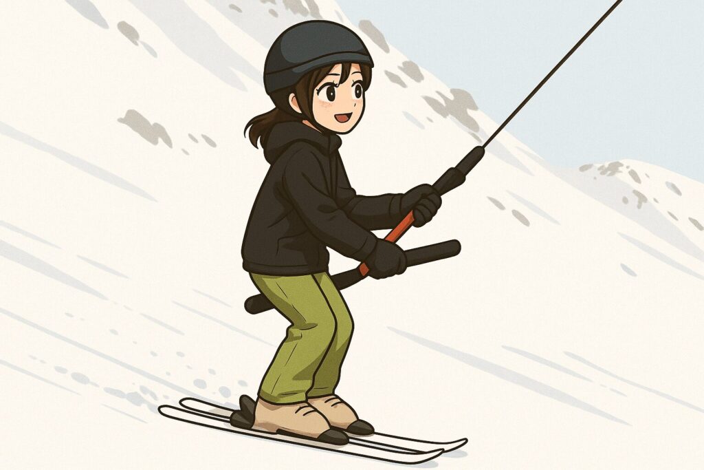 Tバーリフトは慣れるととても便利ですが、初めて乗る方は最初に少し練習が必要です。